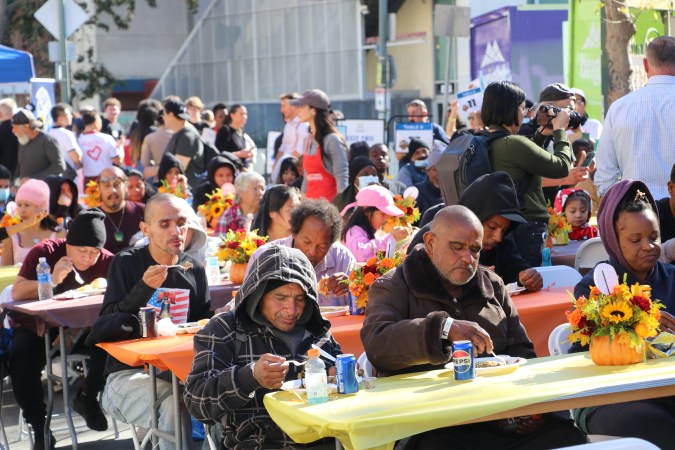 Denis Oleesky, director ejecutivo interino de la Misión de Los Ángeles, dijo sentirse alegre por alimentar a miles de personas, “pero también duele ver el nivel de dolor que hay aquí [entre la gente]”.