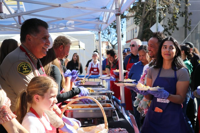 Familias vencen el miedo a ICE y acuden a la Misión de Los Ángeles a celebrar el Día de Acción de Gracias