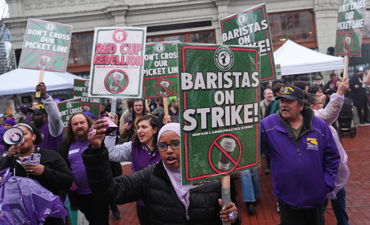 La huelga de empleados de Starbucks exigiendo un contrato sindical tiende a prologarse tras contar con el respaldo de sindicatos, políticos y sociedad civil
