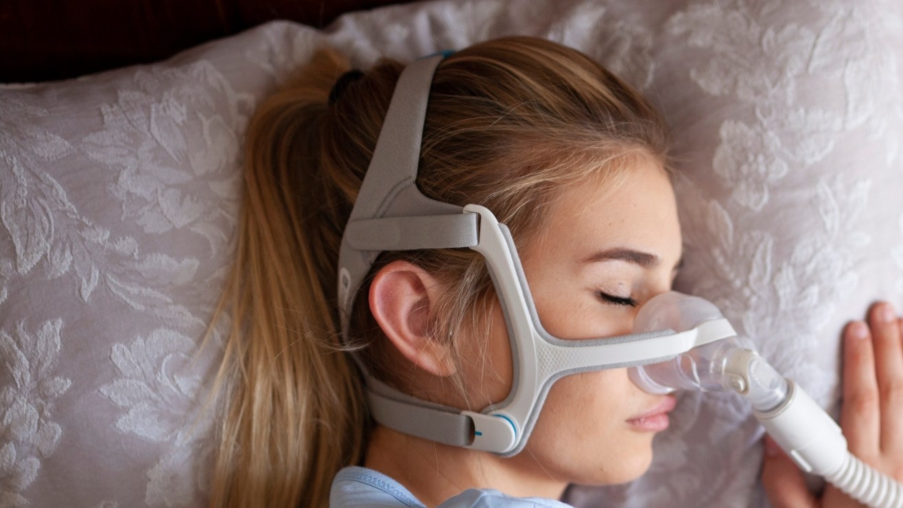 Joven durmiendo con una máquina de presión positiva continua en las vías respiratorias para la apnea del sueño. Crédito: perthstagedtosell | Shutterstock
