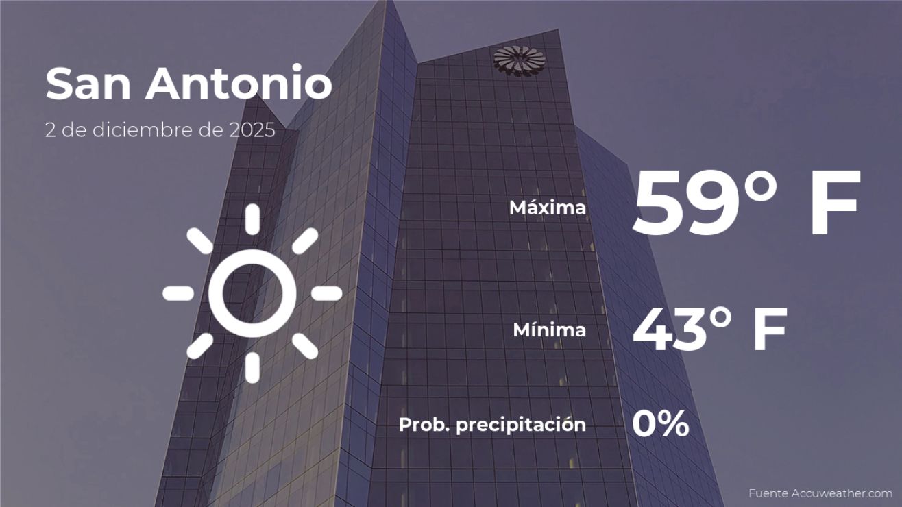Encuentra el pronóstico meteorológico de hoy para San Antonio, Texas, cómo estará el tiempo y las condiciones climáticas este martes 2 de diciembre.