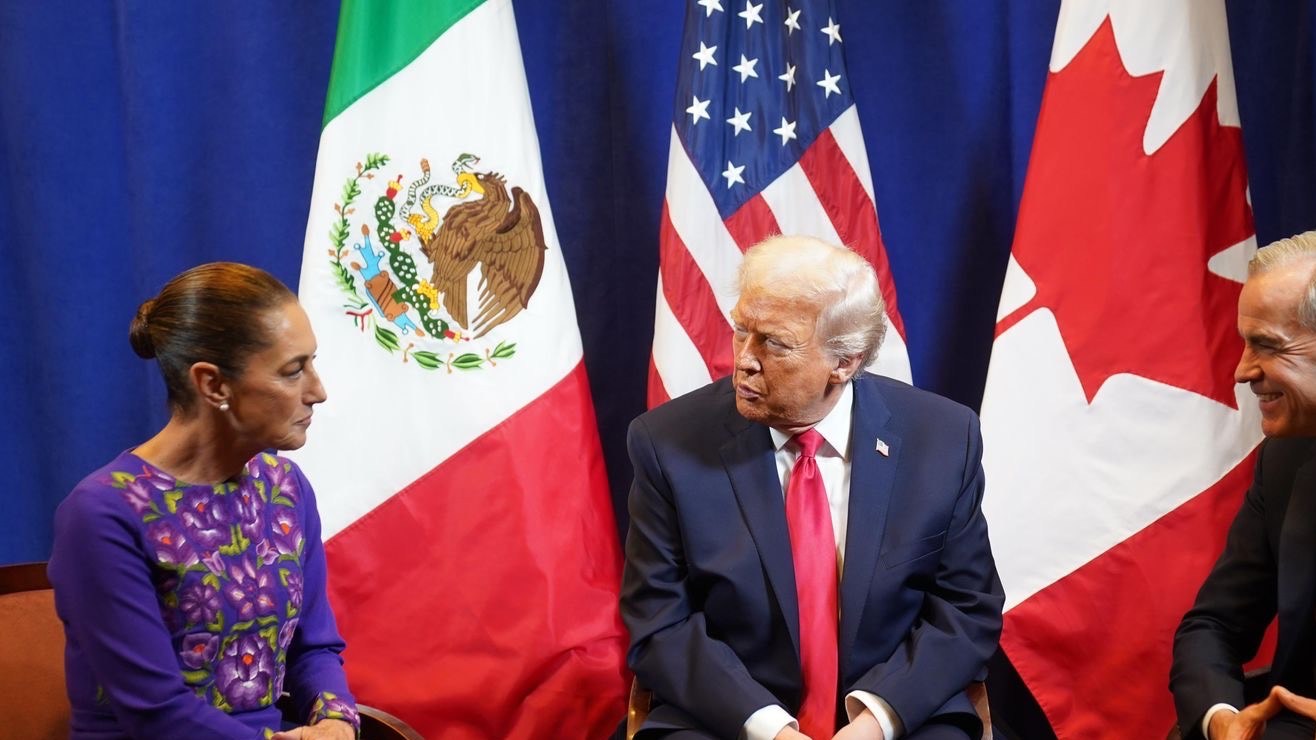 La presidenta de México, Claudia Sheinbaum; el presidente Trump, y el primier ministro de Canadá, Mark Carney. Crédito: Presidencia de México | Cortesía