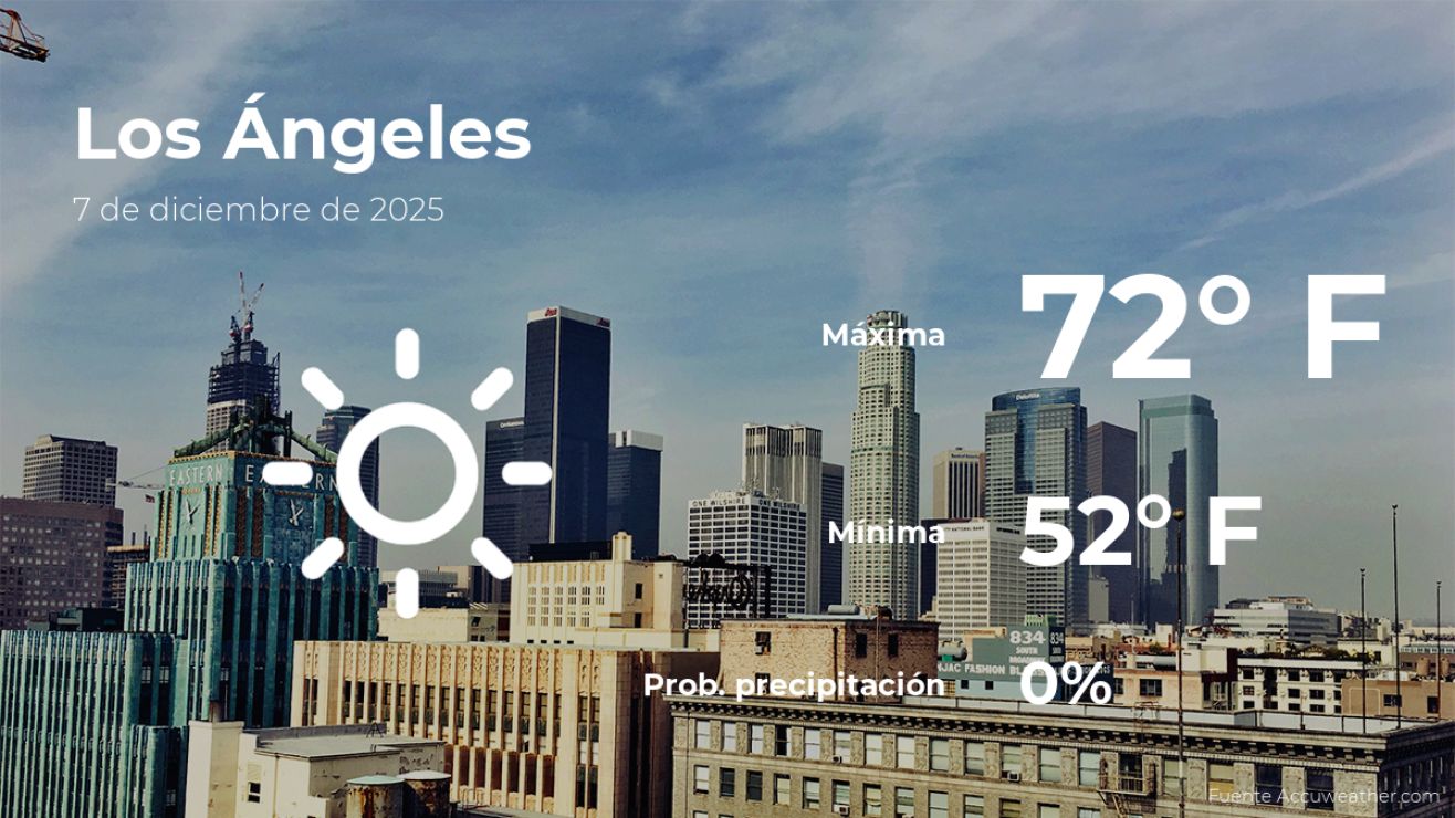 Conoce cómo estará el tiempo en Los Ángeles, para hoy domingo 7 de diciembre. Antes de salir de tu casa, descubre el pronóstico meteorológico y las condiciones climáticas más relevantes para este día.