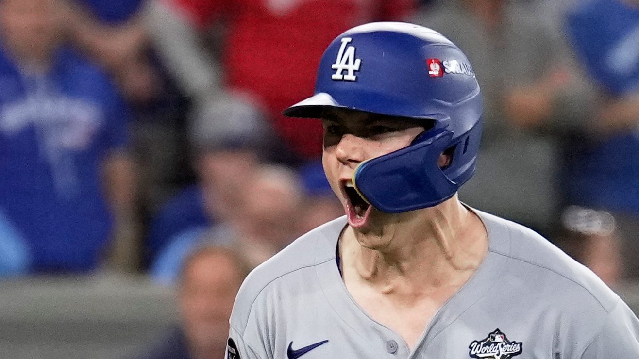 Will Smith celebra cuadrangular en la Serie Mundial 2025. Crédito: Brynn Anderson | AP