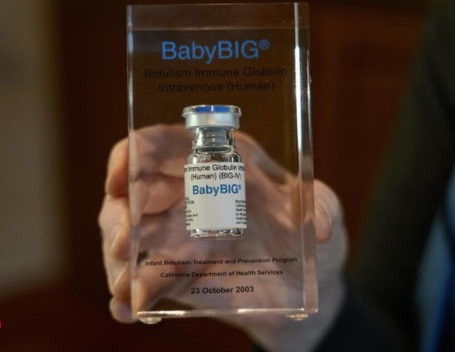 BabyBIG, nombre comercial de la inmunoglobulina humana contra el botulismo, es el único antídoto contra la enfermedad, un medicamento intravenoso que utiliza anticuerpos de donantes vacunados. Su desarrollo fue pionero en la investigación de Dr. Stephen Arnon, científico del Departamento de Salud Pública de California, cuyo trabajo estableció la base para el tratamiento efectivo de esta rara enfermedad. El coste por tratamiento de BabyBIG asciende a casi $70,000 dólares. Producido cada cinco años en lotes pequeños, este medicamento es financiado exclusivamente por las tarifas de venta, que se destinan a programas relacionados con el botulismo.