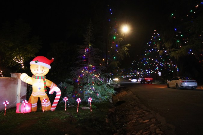El viernes por la noche varias familias recorrían la calle en sus carros, manejando con calma para contemplar cada luz centelleante y cada adorno navideño que adornaba cada casa a lo largo de casi un kilómetro y medio.