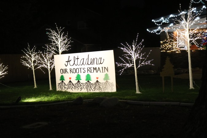 Al recorrer la famosa calle, se pudieron ver varios carteles en los patios de la comunidad con poderosos mensajes como “Altadena Strong” (Altadena fuerte) y “Altadena no está en venta”, mientras canciones navideñas como “Feliz Navidad” y “Rudolph, el reno de nariz roja” resonaban desde los coches.