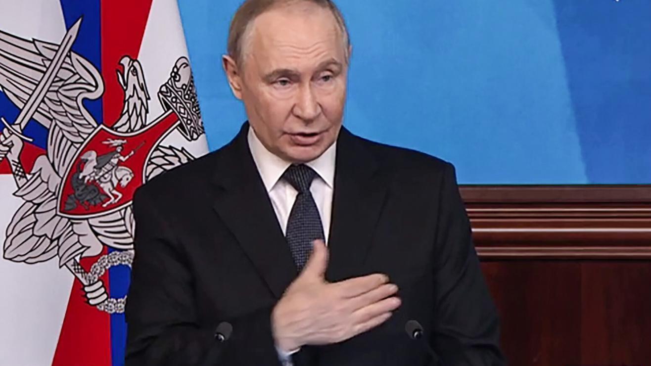 Vladimir Putin, durante su discurso ante la cúpula del Ministerio de Defensa ruso. Crédito: Deutsche Welle