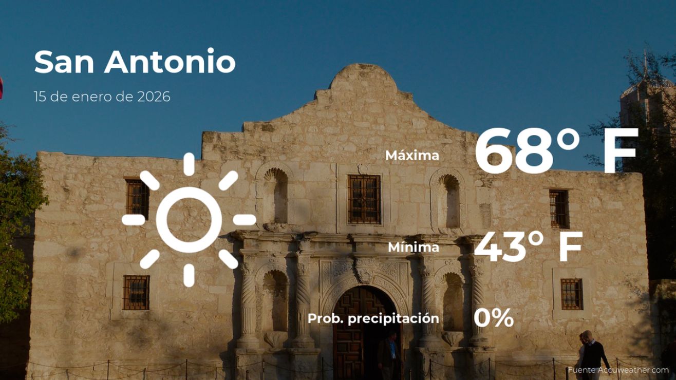 Encuentra el pronóstico meteorológico de hoy para San Antonio, Texas, cómo estará el tiempo y las condiciones climáticas este jueves 15 de enero.