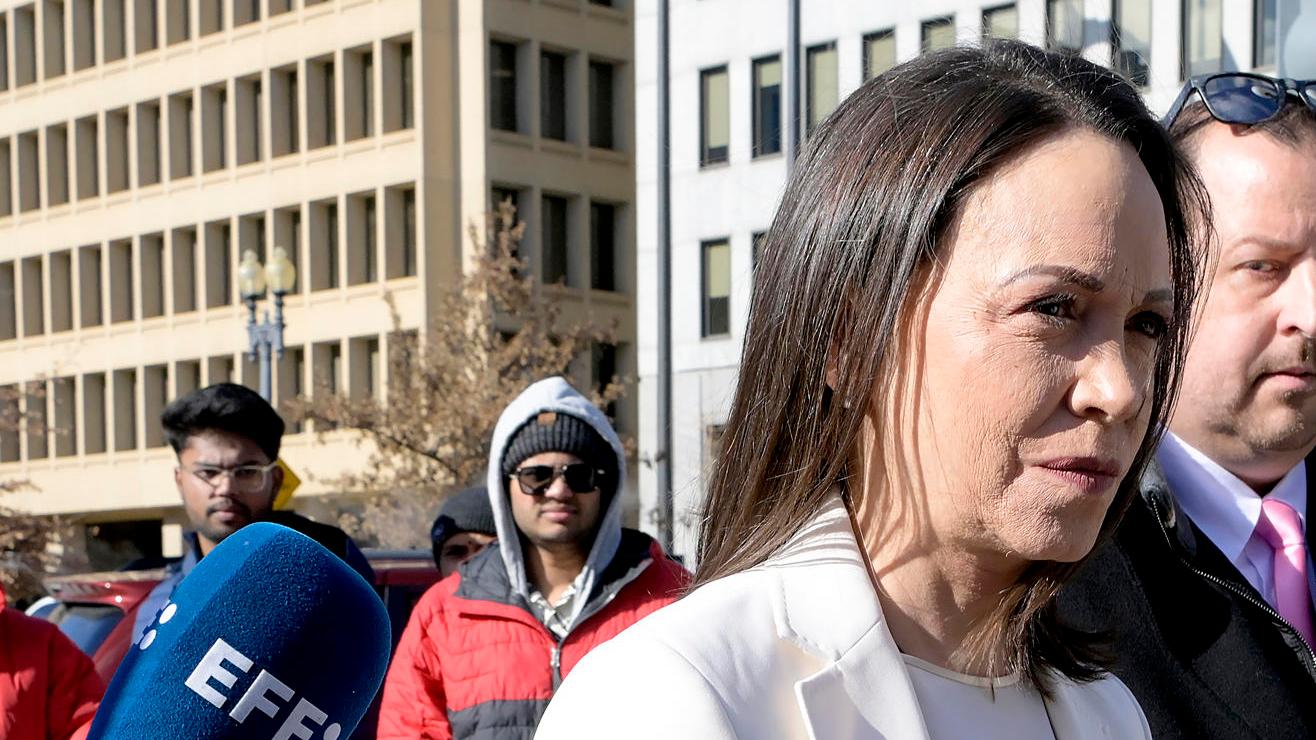 La dirigente venezolana salió pocos minutos antes de las 02:30 pm de la Casa Blanca, rumbo al Capitolio, donde tiene previsto reunirse con senadores de ambos partidos a las 03:00 pm.