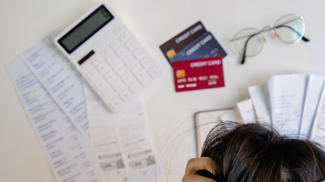 Estresada calculando gastos. Crédito: kitzcorner | Shutterstock