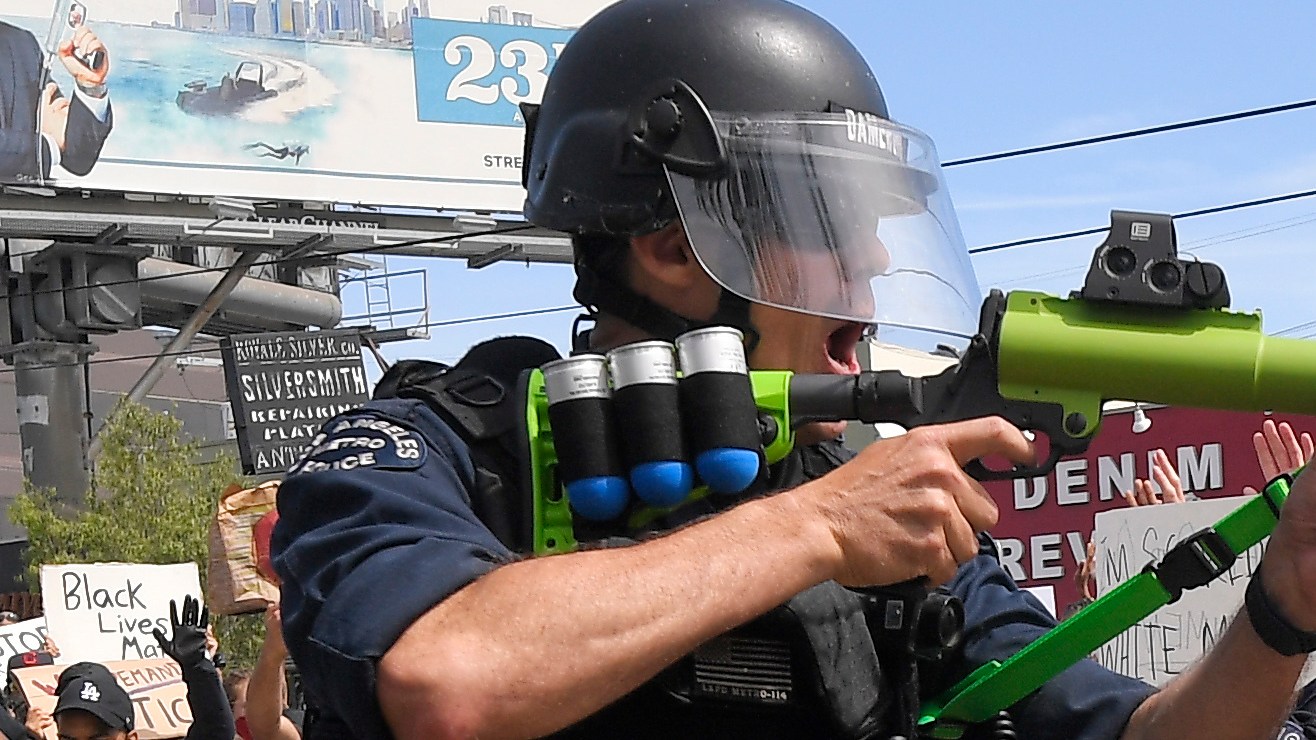 Oficial de Los Ángeles dispara munición no letal en una manifestación. Crédito: Mark J. Terrill | AP
