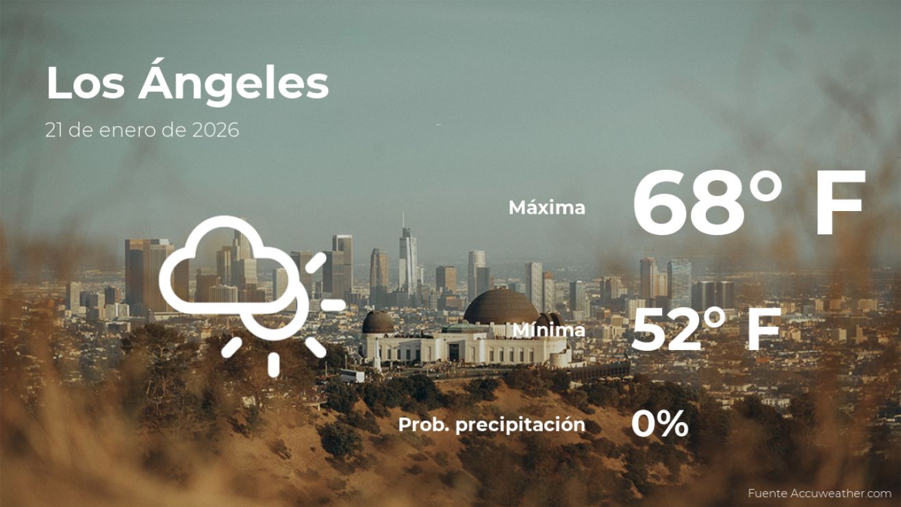 Conoce cómo estará el tiempo en Los Ángeles, para hoy miércoles 21 de enero. Antes de salir de tu casa, descubre el pronóstico meteorológico y las condiciones climáticas más relevantes para este día.