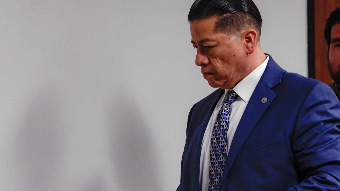 El ex oficial de policía del distrito escolar de Uvalde, Adrian Gonzales, abandona la sala del tribunal mientras el jurado vuelve a deliberar durante su juicio. Crédito: Sam Owens/The San Antonio Express-News/Pool | AP