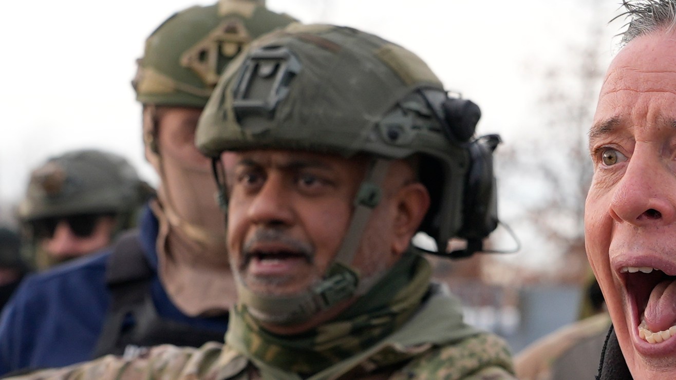 El comandante de la Patrulla Fronteriza de EE. UU., Gregory Bovino, grita a los manifestantes el domingo 11 de enero de 2026 en Minneapolis. Crédito: Jen Golbeck | AP