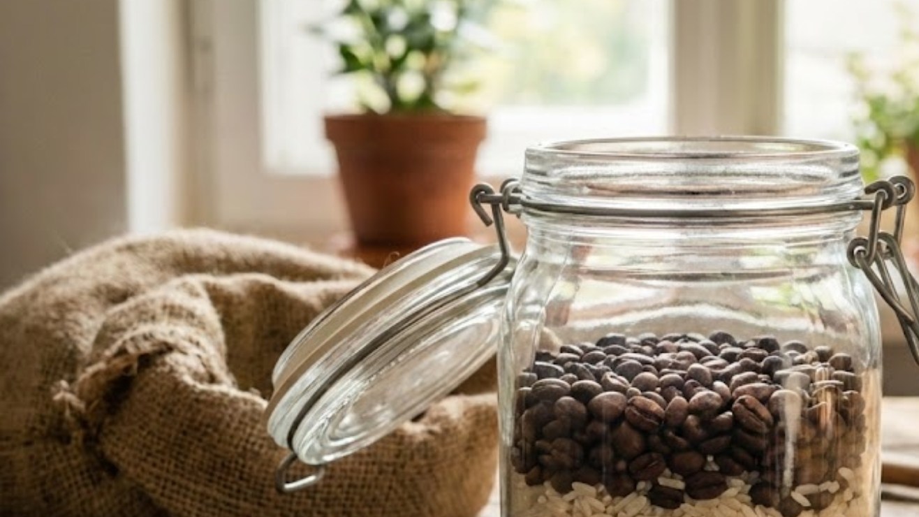 Un frasco abierto con arroz y café, colocado discretamente en algún rincón de la casa. No se trata de decoración, sino de un truco casero que está ganando popularidad por su utilidad para mejorar el ambiente en espacios cerrados, especialmente donde la humedad y los malos olores suelen acumularse.