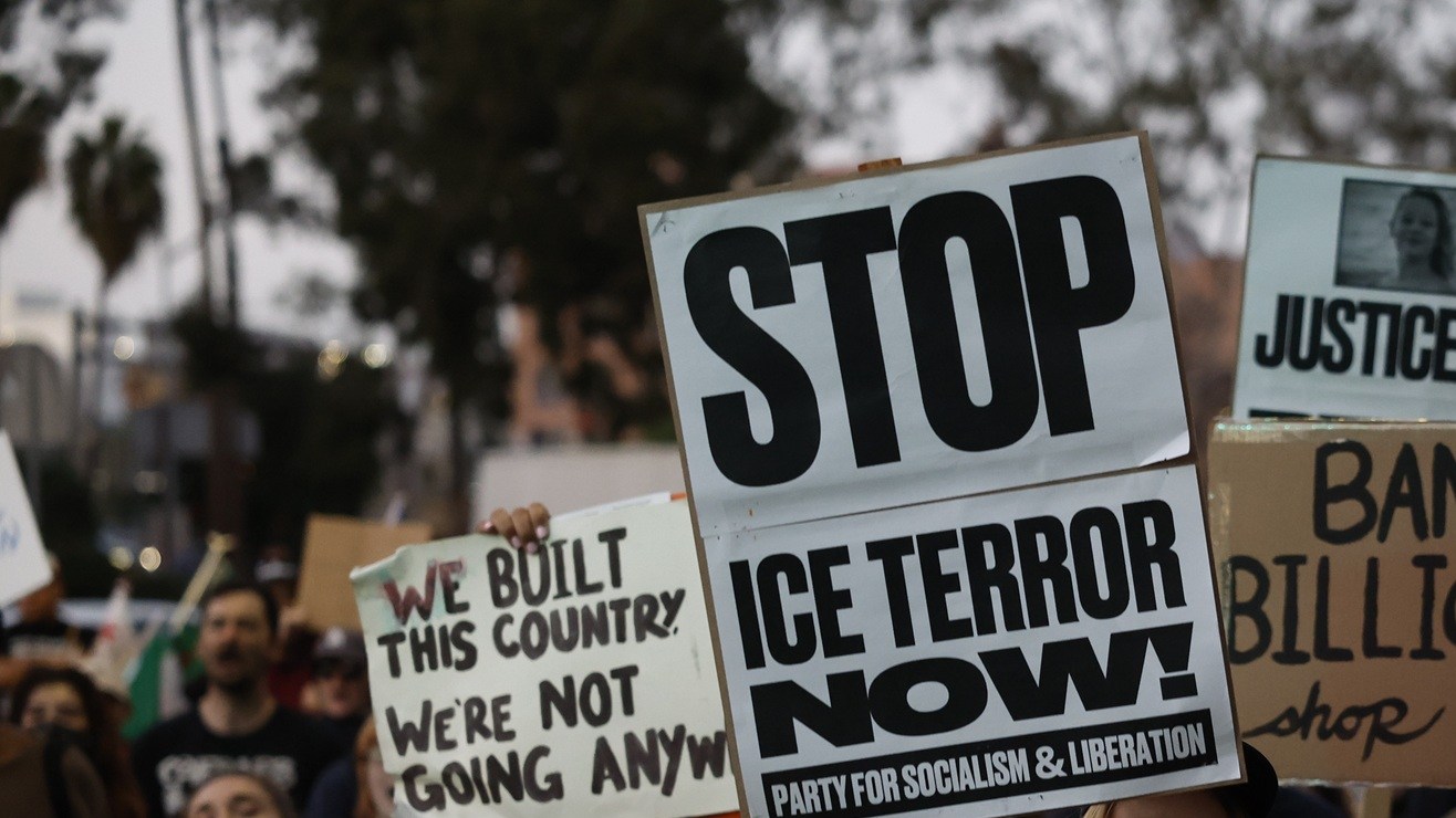 Manifestantes en Los Ángeles contra las operaciones de ICE.