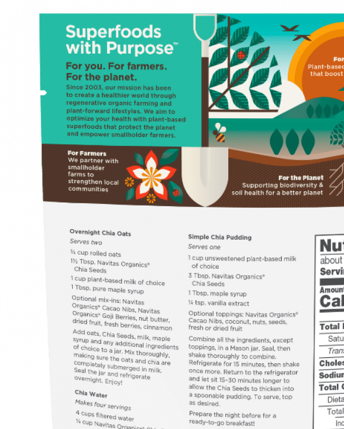 Las semillas de chía se anuncian en las bolsas del producto como un “superalimento de origen vegetal"