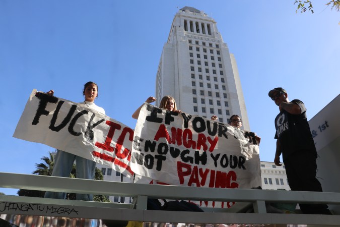 “Están tomando nuestros impuestos ahora mismo y canalizándolos a ICE, más de 100 mil millones de dólares, eso es el dinero que Los Ángeles gasta en personas sin hogar durante 1000 años. Eso es el presupuesto de toda la ciudad durante 10 años y un tercio del dinero de California”, añadió. “Y lo están gastando, aterrorizando a nuestras comunidades”.