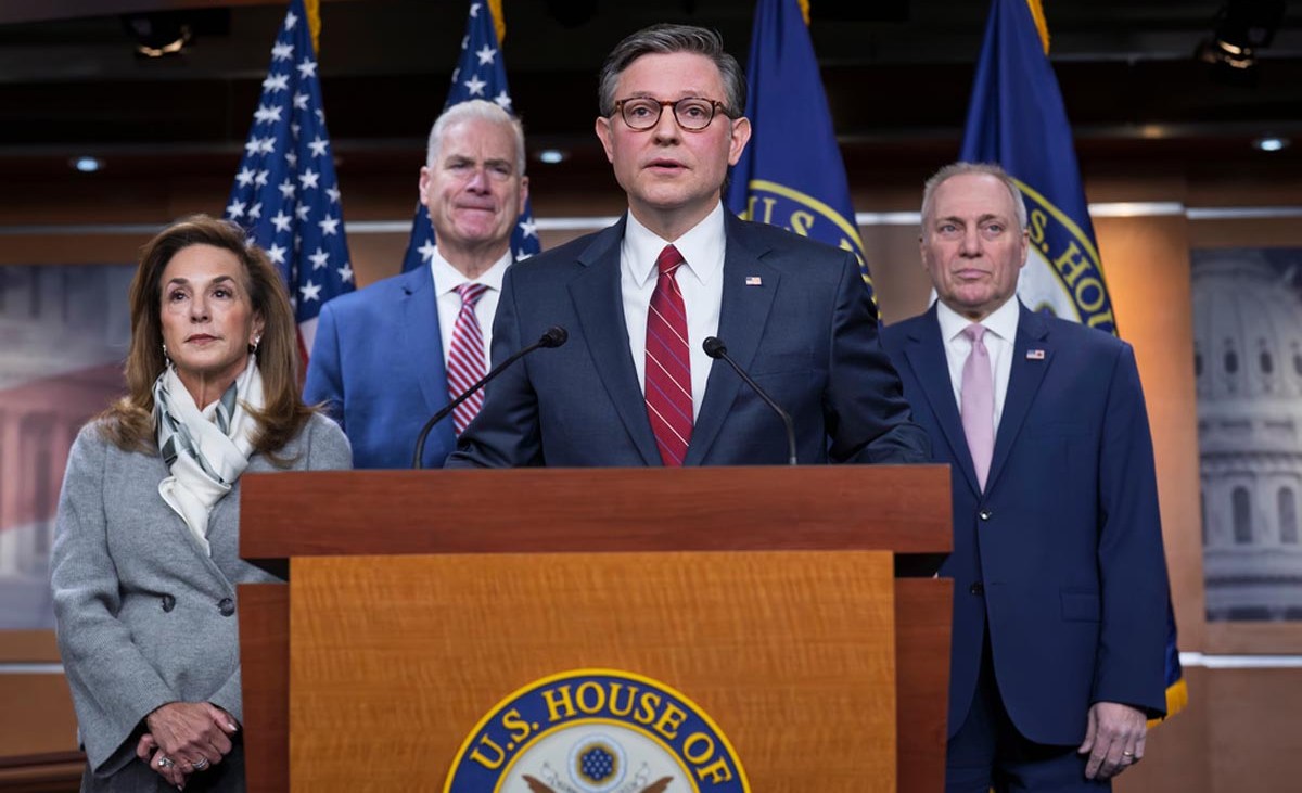 Mike Johnson, presidente de la Cámara de Representantes, tuvo que persuadir a la conferencia republicana para que respaldara un acuerdo que sólo otorgará financiamiento temporal al Departamento de Seguridad Nacional (DHS).