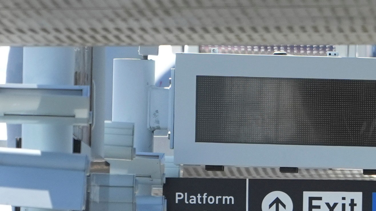 A Metro light rail train returns to service in Los Angeles, Tuesday, April 30, 2024. Officials say multiple people were hurt, and a few seriously, when a Metro light rail train and a University of Southern California shuttle bus collided in downtown Los Angeles. (AP Photo/Damian Dovarganes)
