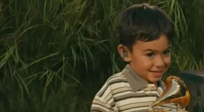 Ese niño que creció en Puerto Rico y nunca bajó los brazos reapareció en un momento del espectáculo del Super Bowl en el que Benito le entregó a un niño uno de los gramófonos que recibió en la ceremonia del domingo 1 de febrero.