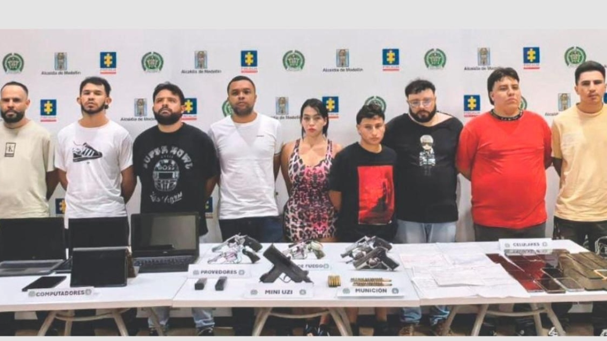 Los detenidos fueron capturados en un apartamento de Medellín durante un operativo inicialmente orientado a combatir el tráfico de armas. En el lugar, la Policía incautó una subametralladora Ingram M11, varios revólveres y una pistola, además de 29 teléfonos celulares, tres computadores y dos tabletas que ahora son analizados por peritos judiciales.