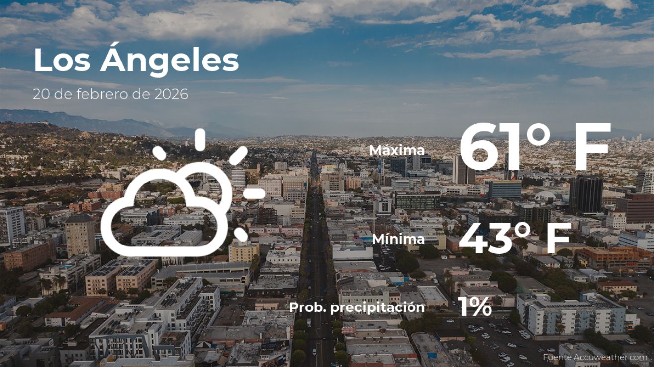 Encuentra el pronóstico meteorológico de hoy para Los Ángeles, cómo estará el tiempo y las condiciones climáticas este viernes 20 de febrero.