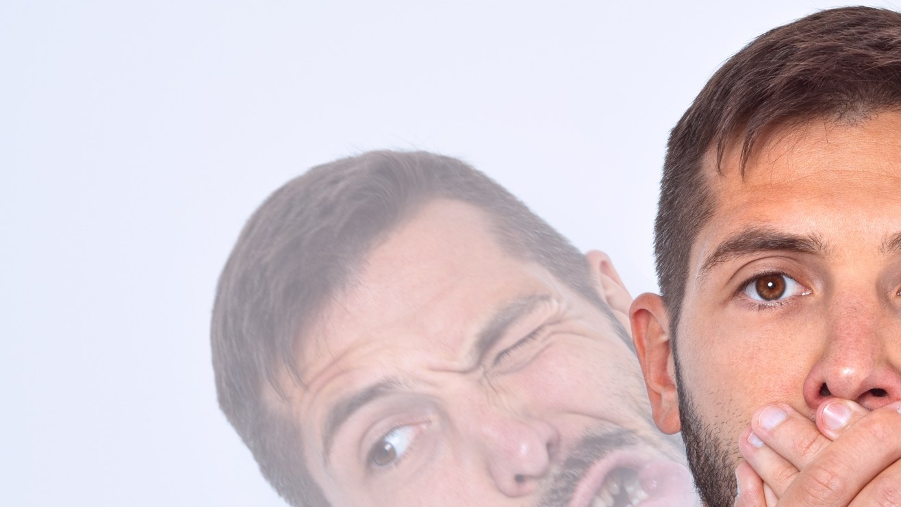 Hombre haciendo tics, bruscos repentinos, movimientos o sonidos. Crédito: Kulkova Daria | Shutterstock