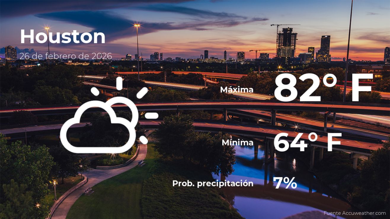 El clima en Houston, Texas, para este jueves 26 de febrero se basará en una variación entre nubes y claros. Según la última información del parte meteorológico de AccuWeather, la temperatura se incrementará hasta un total de 82 grados Fahrenheit (28ºC) de máxima durante el día, mientras que a la noche se registrará la temperatura más baja, con 64 grados Fahrenheit (18ºC) de mínima.