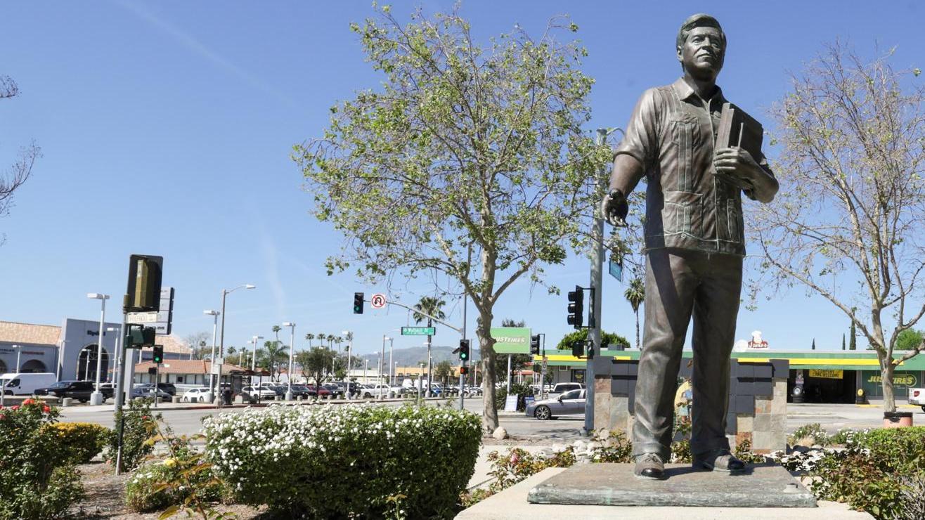 Estatua de César Chávez en un parque de San Fernando, en Los Ángeles. Crédito: CHRIS TORRES | EFE