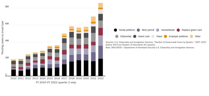 “Los cuatro departamentos del Gobierno federal que manejan el procesamiento de inmigración están en crisis”, indica. “Los retrasos están afectando a decenas de millones de solicitudes de beneficios de inmigración. Los tiempos de espera están alcanzando niveles inimaginables; ahora es mejor medirlos en años, no en meses o días”.