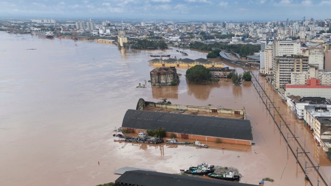 El nivel del río Guaíba, cuyas aguas inundaron el centro histórico de Porto Alegre, la capital regional y donde viven 1.3 millones de habitantes, se estabilizó por encima de los cinco metros, su mayor marca histórica.