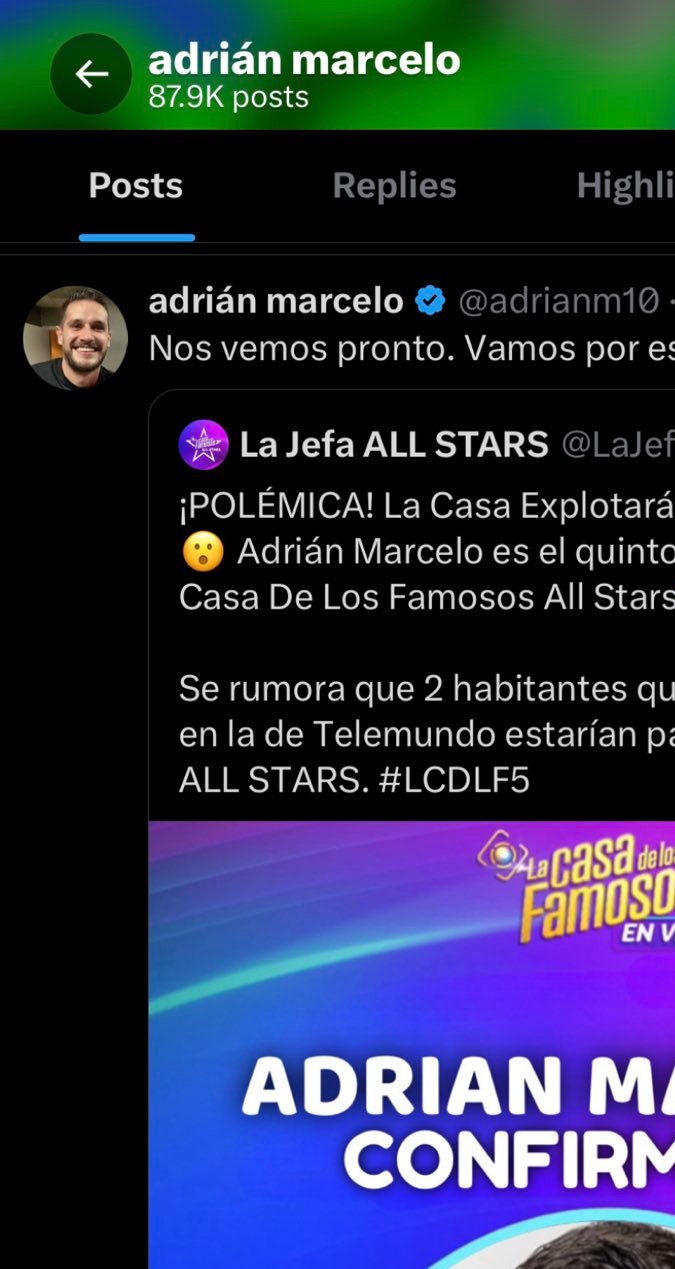 Una cuenta en X, llamada “La Jefa All Stars” lanzó el rumor y el propio Adrián Marcelo contestó con “Vamos por la revancha”.